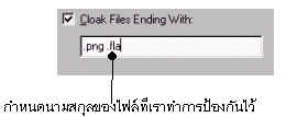 เมื่อเราคลิกเครื่องหมายถูกที่ Enable Cloaking และ Cloak Files Ending With เราก็จะสามารถระบุนามสกุลของไฟล์ที่เราต้องการป้องกันไม่ให