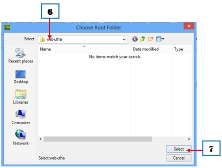 7. คลิกปุ่ม Select เพื่อตอบตกลงที่จะเลือกโฟลเดอร์งานดังกล่าวไปสร้างเป็นไซต์งาน